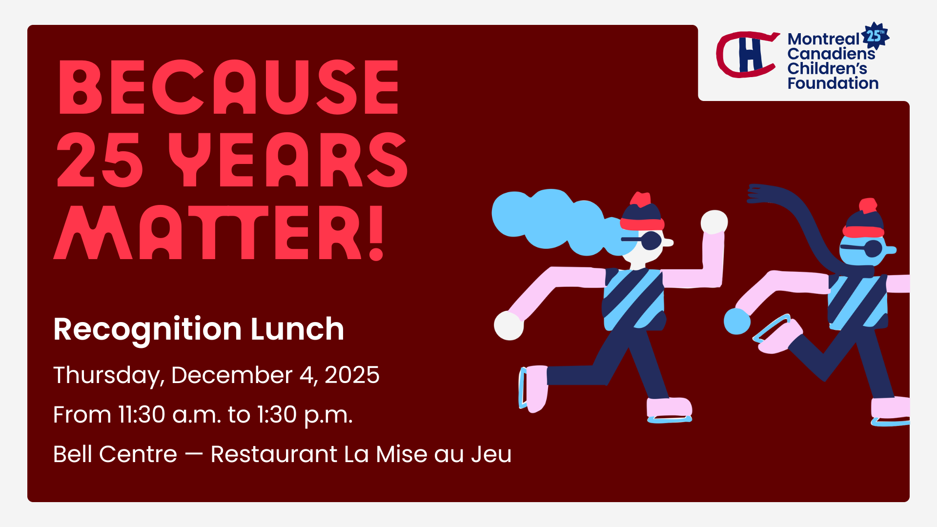 The Montreal Canadiens Children’s Foundation is celebrating 25 years of dedication to youth!